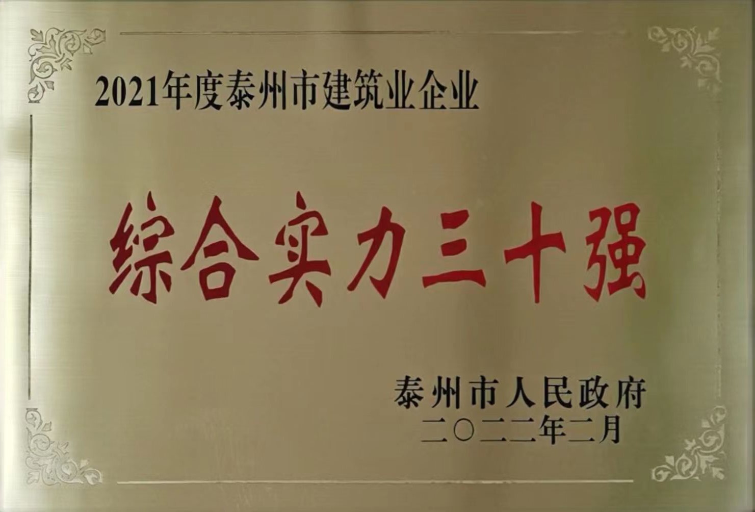 “江蘇省建筑業(yè)優(yōu)秀企業(yè)”、“江蘇省建筑業(yè)最具成長性百強企業(yè)”,2016年被國家工商總局授予“國家級守信用重合同企業(yè)”,2015年被全國總工會授予“全國模范職工之家”稱號,2018年被中國建筑企業(yè)協會評為“2017年度建筑業(yè)AAA級信用企業(yè)”